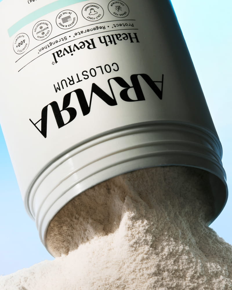 From grass-fed, pasture-raised cows on family-owned farms to calf-first sourcing to bioactive preservation, colostrum is designed by nature and protected by ARMRA®.