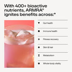 Sip your scoops 02 Mix any ARMRA® flavor into a cool beverage. Avoid hot liquids to preserve the 400+ bioactive nutrients and make your daily scoop a moment to savor.